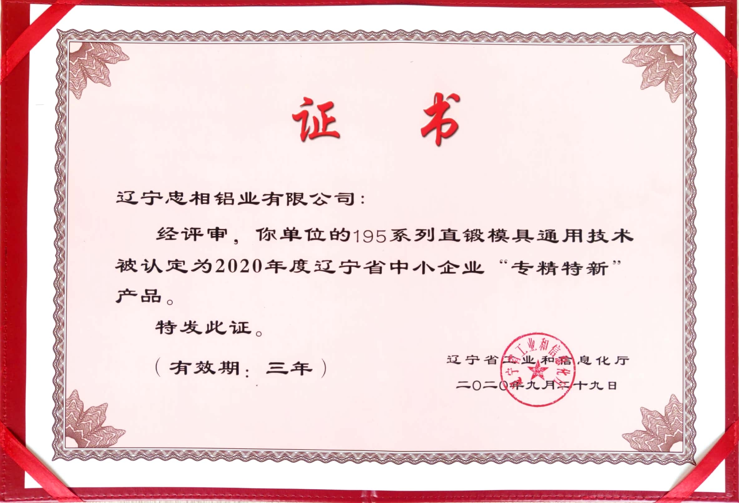 近日,遼寧省工業(yè)和信息化廳公布《2020年度遼寧省專精特新產(chǎn)品名單》,憑借先進的產(chǎn)品技術(shù)、過硬的制造實力和優(yōu)秀的市場表現(xiàn),忠相鋁業(yè)195系列直鍛模具通用技術(shù)榮獲遼寧省“專精特新”產(chǎn)品榮譽稱號。