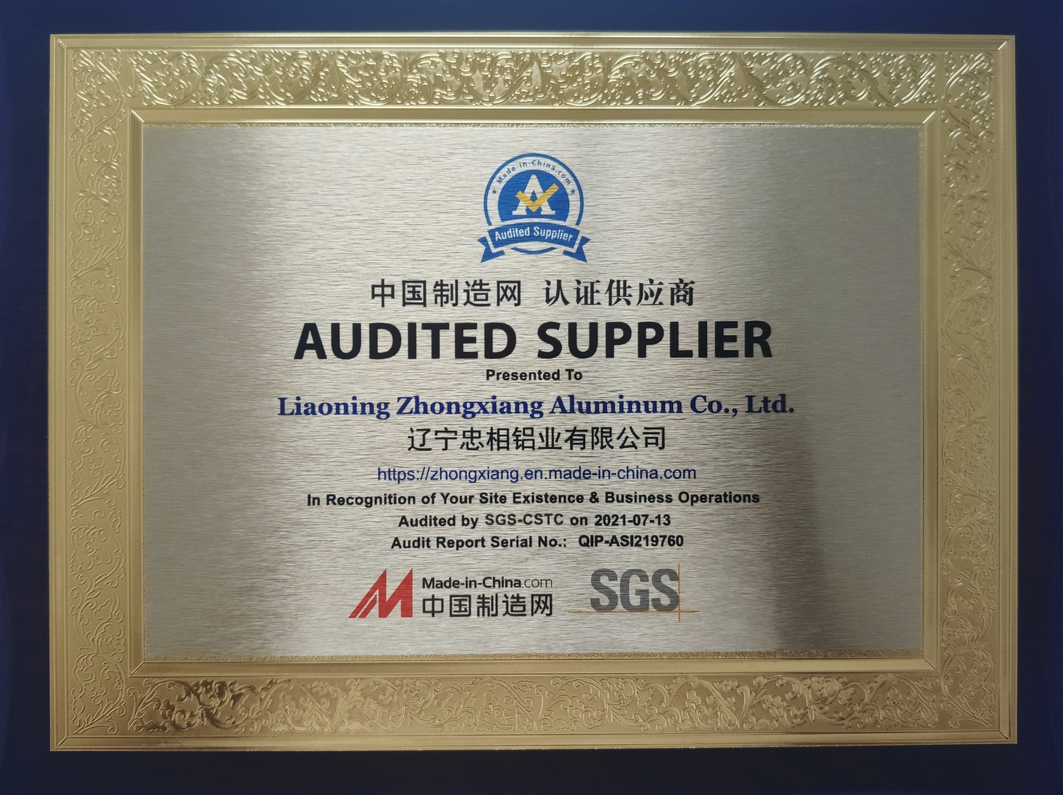 近日,遼寧忠相鋁業(yè)有限公司通過了國際知名權(quán)威檢驗(yàn)認(rèn)證公司SGS的審核,榮獲中國制造網(wǎng)認(rèn)證供應(yīng)商。這一認(rèn)證不僅可以更好地向國際展示公司的綜合實(shí)力、出口能力和品質(zhì)管理,而且也為國際商家提供了誠實(shí)可靠的采購保障,使采購商可以更放心地利用互聯(lián)網(wǎng)尋找誠信的合作伙伴。
